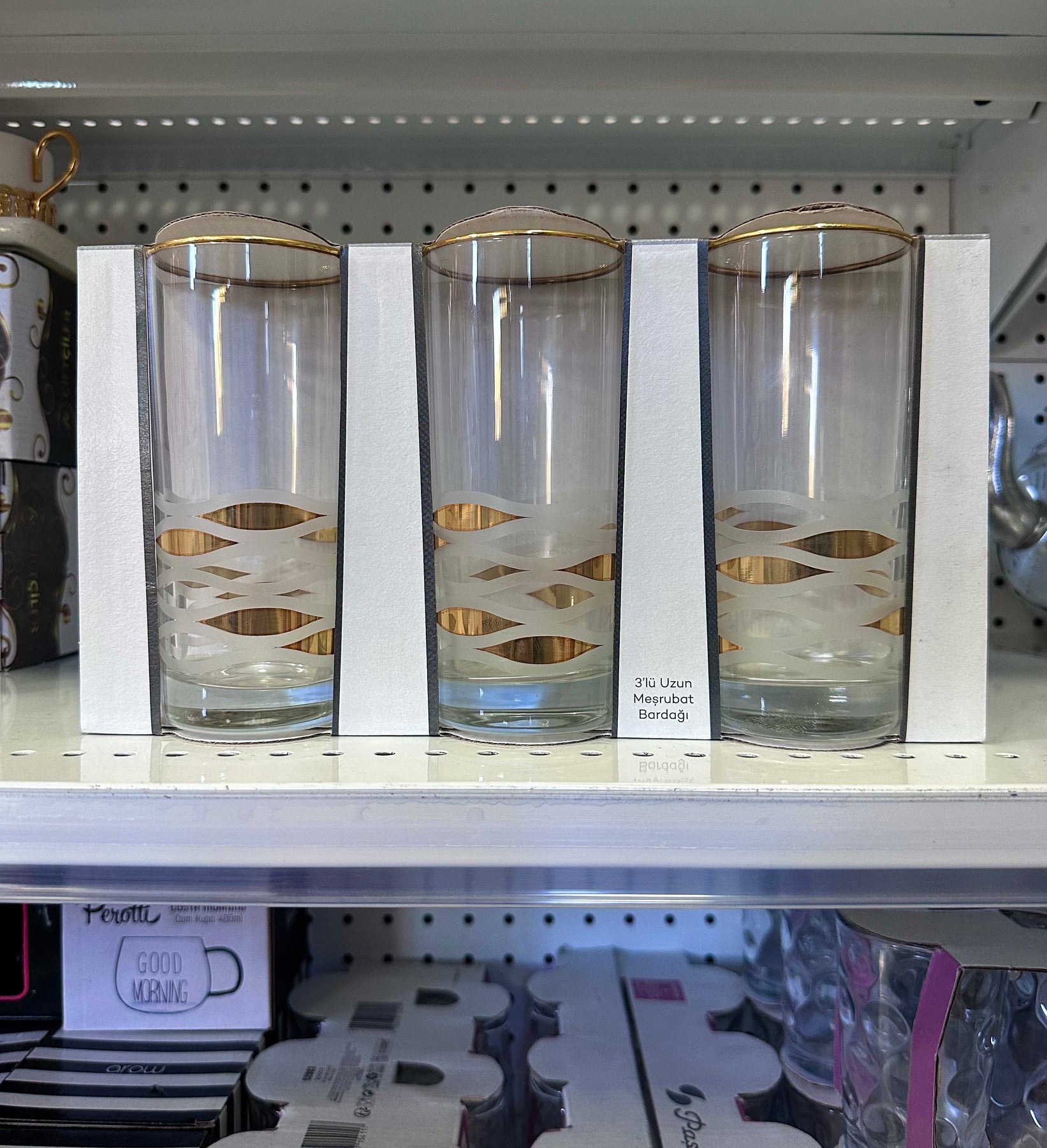 Turkish Style Gold Detail Tall Glass - Set of 3